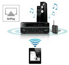 This AV receiver supports AirPlay, which means they can accept wireless music streaming from an iPod, iPhone or iPad, as well as from iTunes on a Mac® or PC. This makes it easy to enjoy music from your mobile devices or computer on your home theater system. You can view metadata such as song title and artist name as well as album art* via the AV receiver's on-screen display.